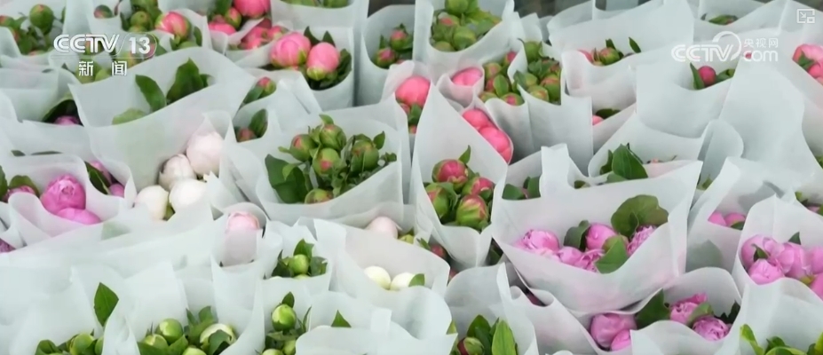 正在山东菏泽,大棚里的一株株反季候催花芍药枝条舒展、绿叶苍翠。工人们手拿“标尺”和铰剪,剪下成熟的芍药鲜切花,再颠末速冷、拾掇、包拆,发往全国各地花草市场。数据显示,2025年,菏泽芍药鲜切花估计总产量约1。2亿支摆布。